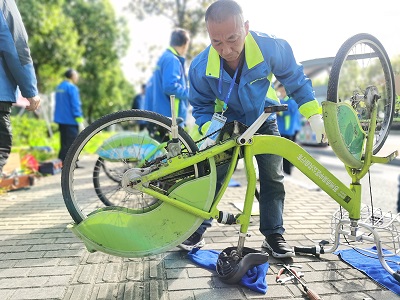 首場比拼的是公共自行車維修技能
