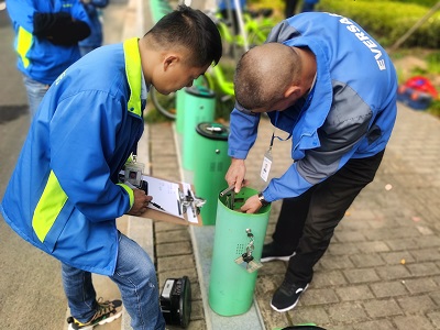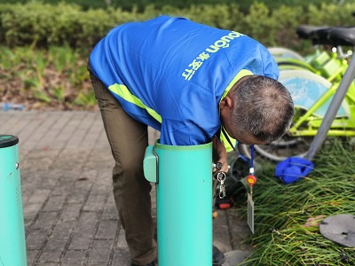 那邊比賽,師傅們紛紛伸手在綠色樁體內(nèi)“摸魚”。站點(diǎn)設(shè)備維修技能比賽是今年新增的項目,重點(diǎn)檢查公共自行車的鎖車及解鎖一體樁使用是否正常、站點(diǎn)底板是否銹蝕、鎖車及解鎖系統(tǒng)是否損壞等方面。