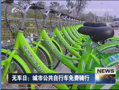 記者戚蓓寧:這里是珠山景區(qū),在我身旁的是我市剛剛建成的公共自行車停車站點,大家能看到50輛嶄新的綠色自行車停在這里格外醒目,今天恰逢世界無車日,這里將要舉行的是市民免費體驗騎游活動。這種綠色出行的方式及低碳環(huán)保,同時也能有效緩解城市交通的壓力。